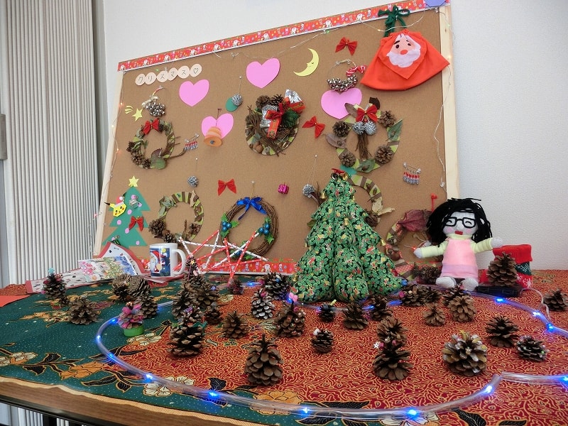 学生たちが、玄関の入口を可愛く飾り付けしてくれました♪